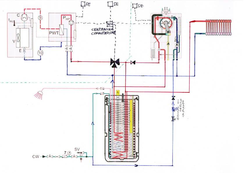seconda fase, abbinamento una pdc da far funzionare, con centralina di commutazione, in alternanza alla caldaia con switch a 5°