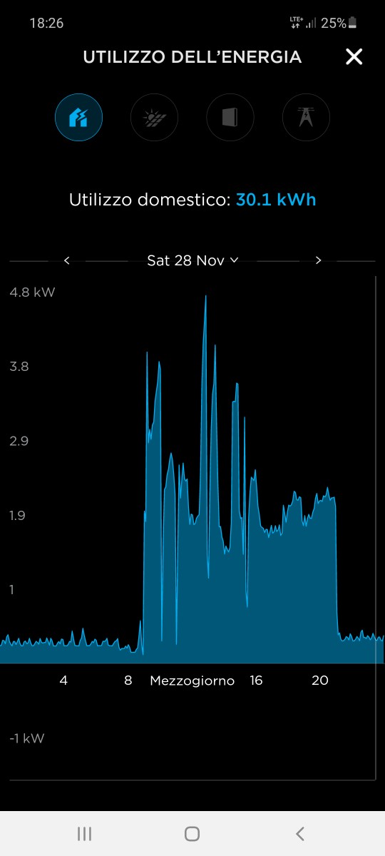 picco di 4,9 kw - consumo totale giornaliero 35,5 kwh