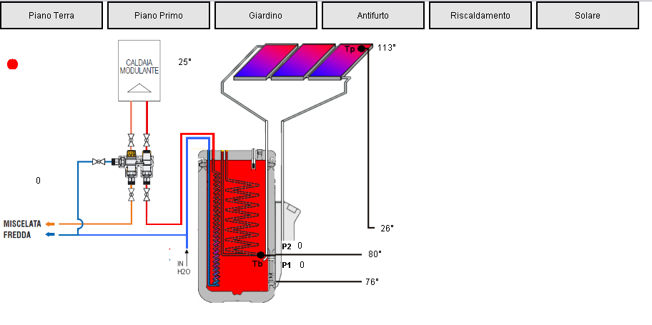 Vorrei condividere e confrontarmi con il forum sulle scelte che ho fatto per il monitoraggio di un impianto con 4 pannelli solari V26 della rotex a svuotamento con accumulo di 500 lt. collegato alla caldaia tramite solarical Plus della Caleffi per l'integrazione dell'acqua sanitaria.
