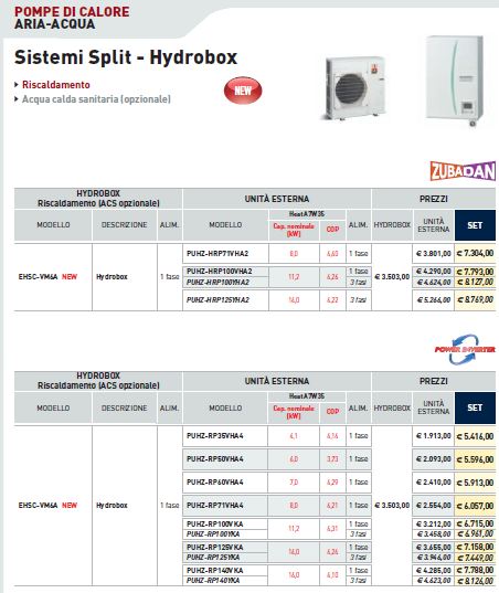 Power inverter 4 kW nominale a 7°, la più piccola splittabile con sistema idronico 1900€ (solo macchina esterna)+ 1000€ caldaia + installazione compresa canna fumaria e oneri fornitura puoi andare a pareggiare tranquillamente la maggior spesa per una Zubadan.